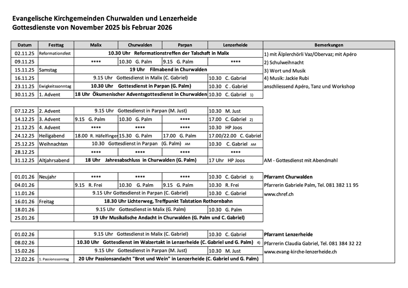Eine Übersicht über die nächsten Gottesdienste bis einschliesslich Februar 2026 zum Download
